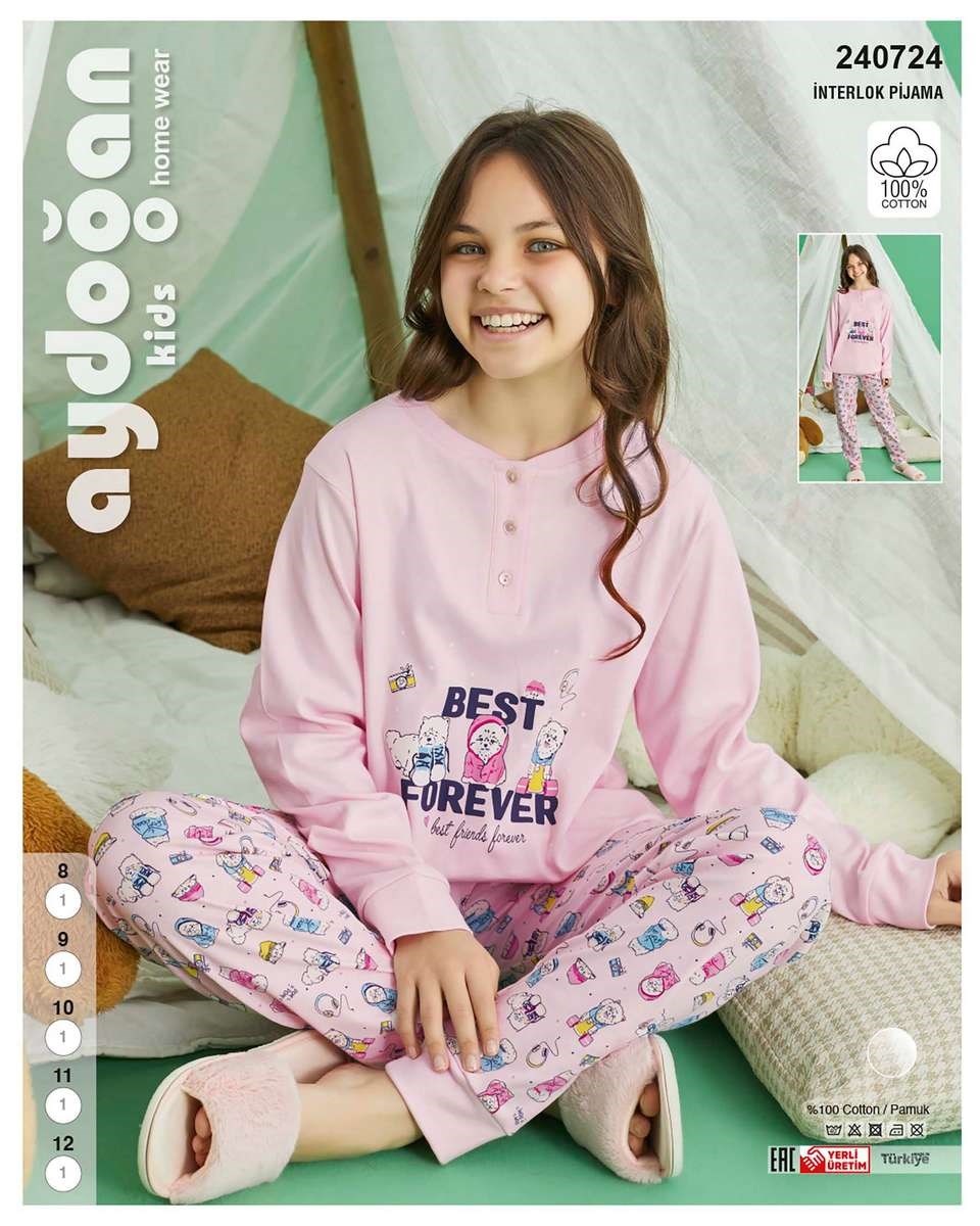 Домашний костюм детский из плотного хлопкового трикотажа Интерлок. Пижама состоит из кофты с длинными рукавами и свободных брюк. Эластичные манжеты на рукавах и штанах не дают им задираться во время сна. Aydogan самый продаваемый бренд пижамы и нижнего белья в Турции с 1972 года.