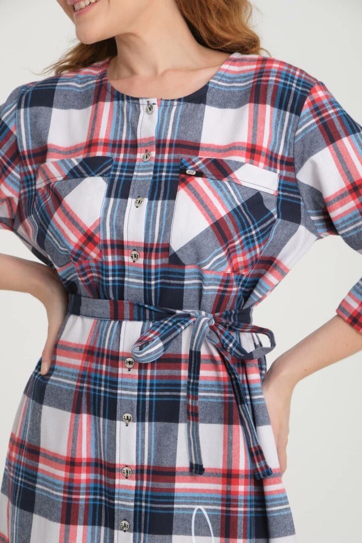 Халат на пуговицах с длинным рукавом и поясом из мягкой бархатистой фланели в клетку.