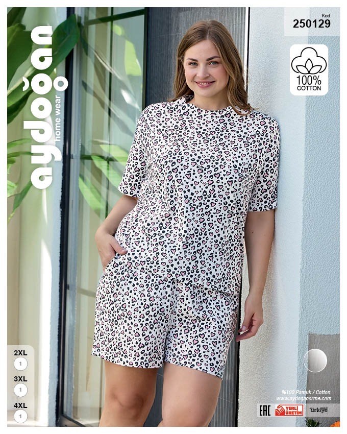 Комплект из хлопкового трикотажа, состоящий из свободной футболки и шорт с карманами на широкой резинке.