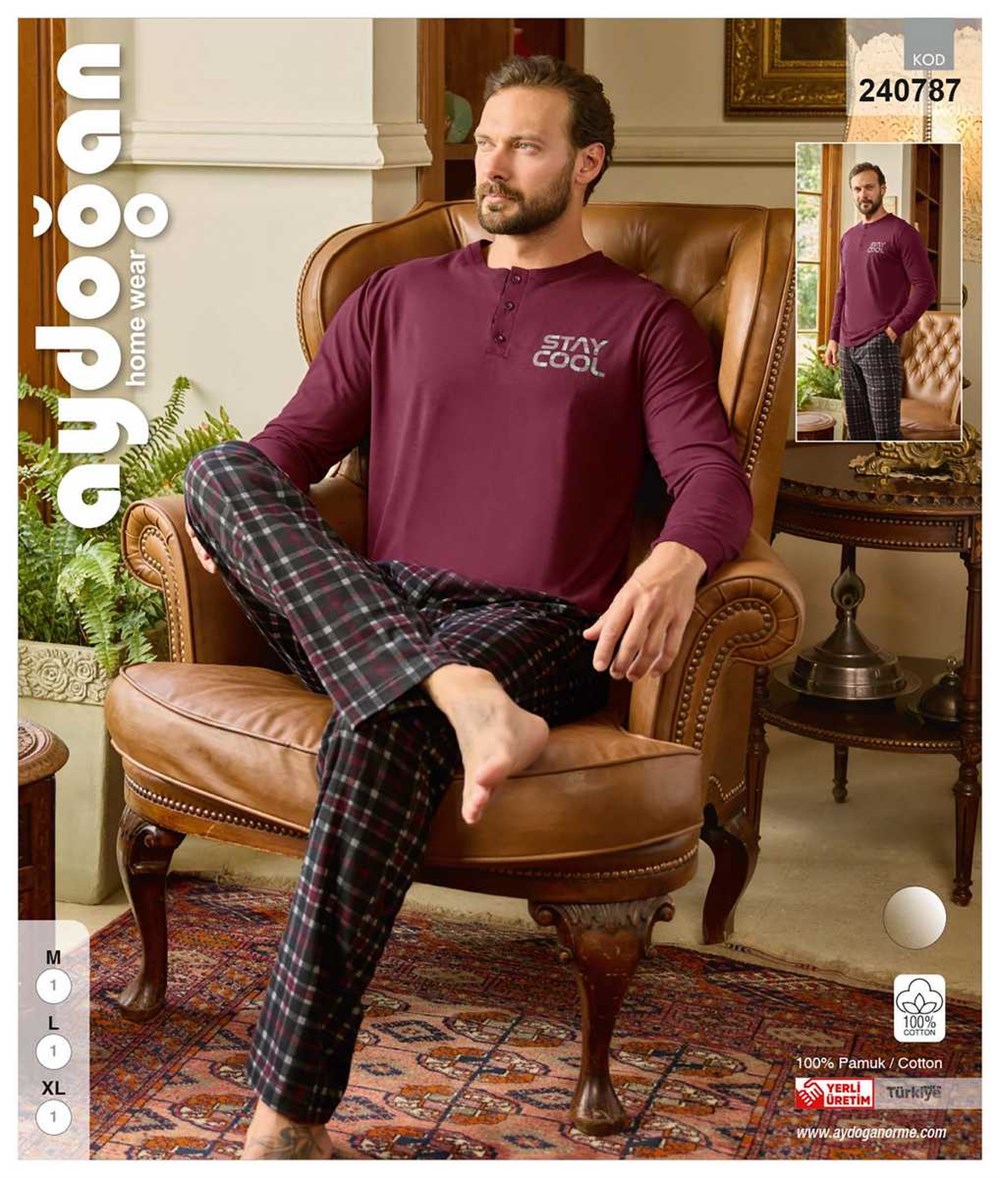 Комплект мужской однотонная футболка с длинным рукавом и брюки в клетку выполнен из великолепного турецкого трикотажа.