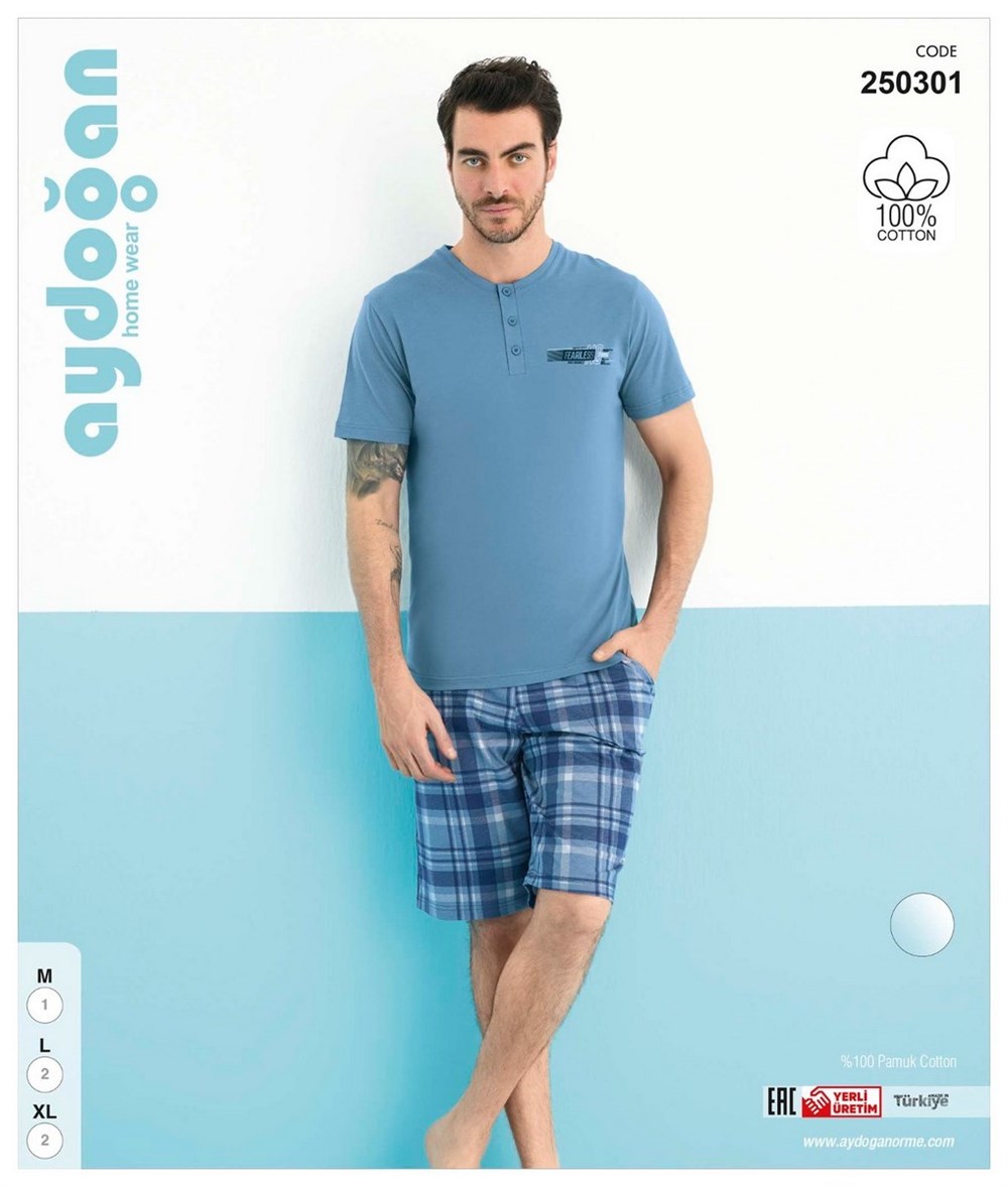 Комплект трикотажный из 100% хлопка - однотонная футболка и удлиненные клетчатые шорты с карманами.