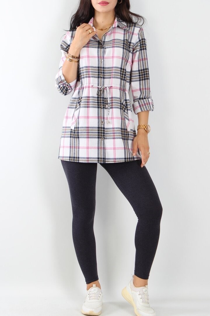 Комплект: фланелевая рубашка на пуговицах и длинные эластичные леггинсы.