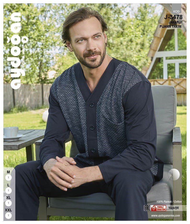 Домашний костюм мужской из плотного трикотажа: джемпер v-образный вырез пуговицы по всей длине.