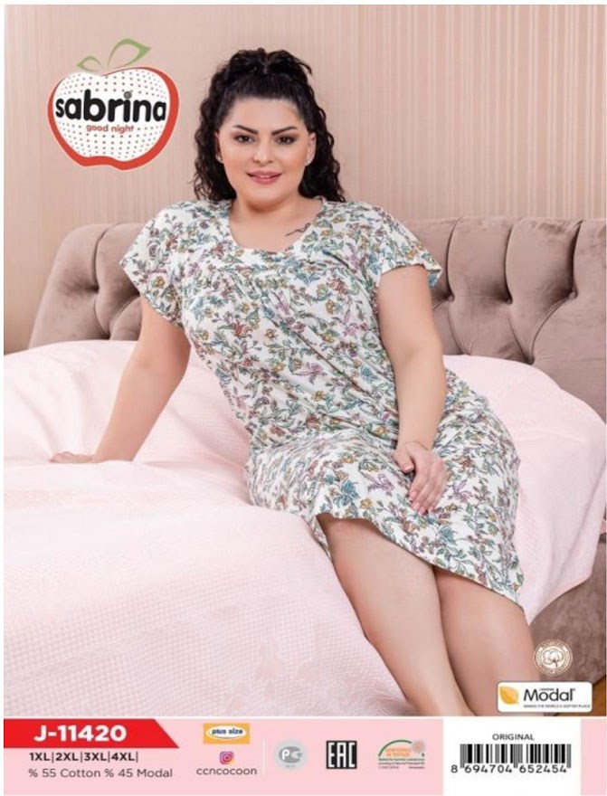 Ночная сорочка большого размера с коротким рукавом из великолепного трикотажа.