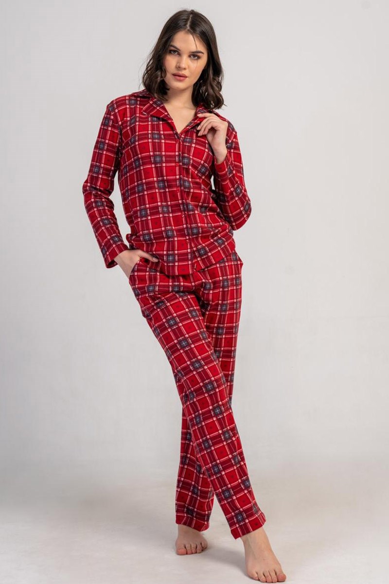 Классическая пижама на пуговицах с отложным воротником из высококачественного плотного трикотажа в клетку.