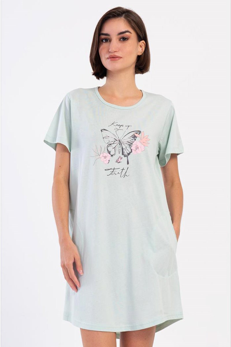 Туника с коротким рукавом и карманами выполнена из высококачественного трикотажного полотна. Модель идеальна для домашнего отдыха или сна.